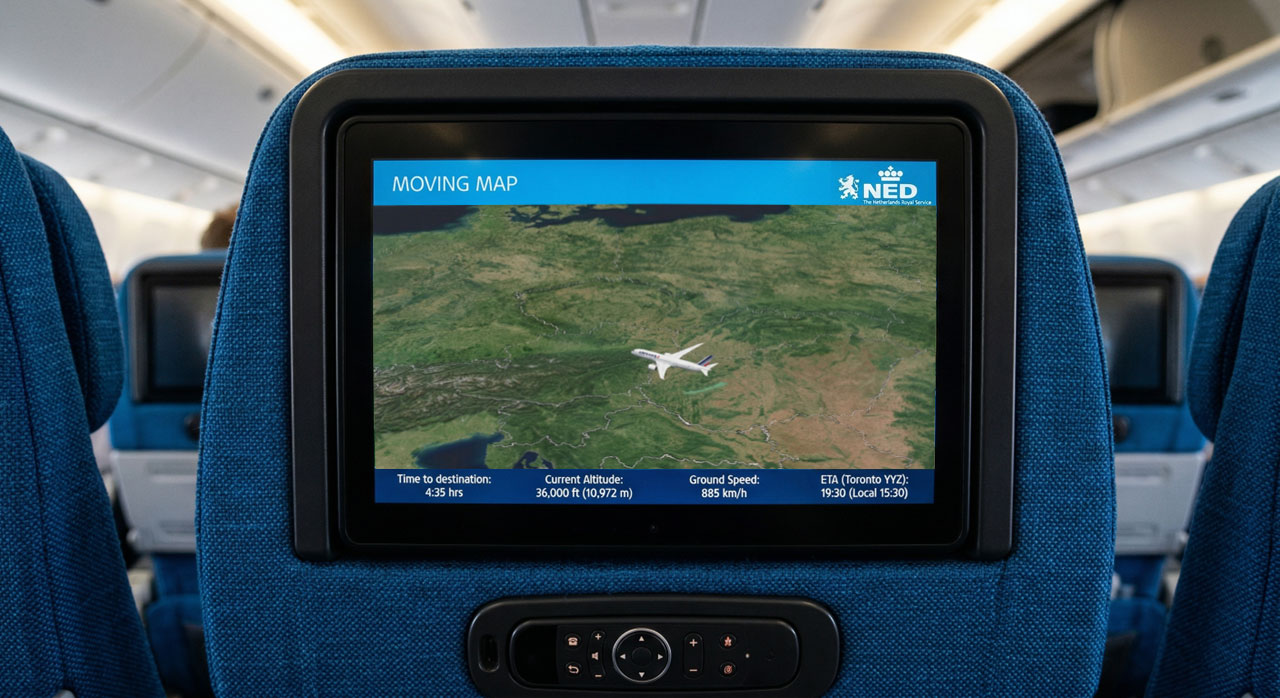 - Seamless IFE integration: High-performance visual clarity across all interactive moving map displays.