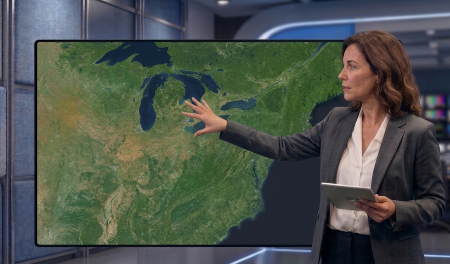 Create fresher, more credible maps and on-air visuals with monthly updated satellite imagery designed for newsrooms, motion teams, weather production, and in-flight entertainment (IFE) systems.